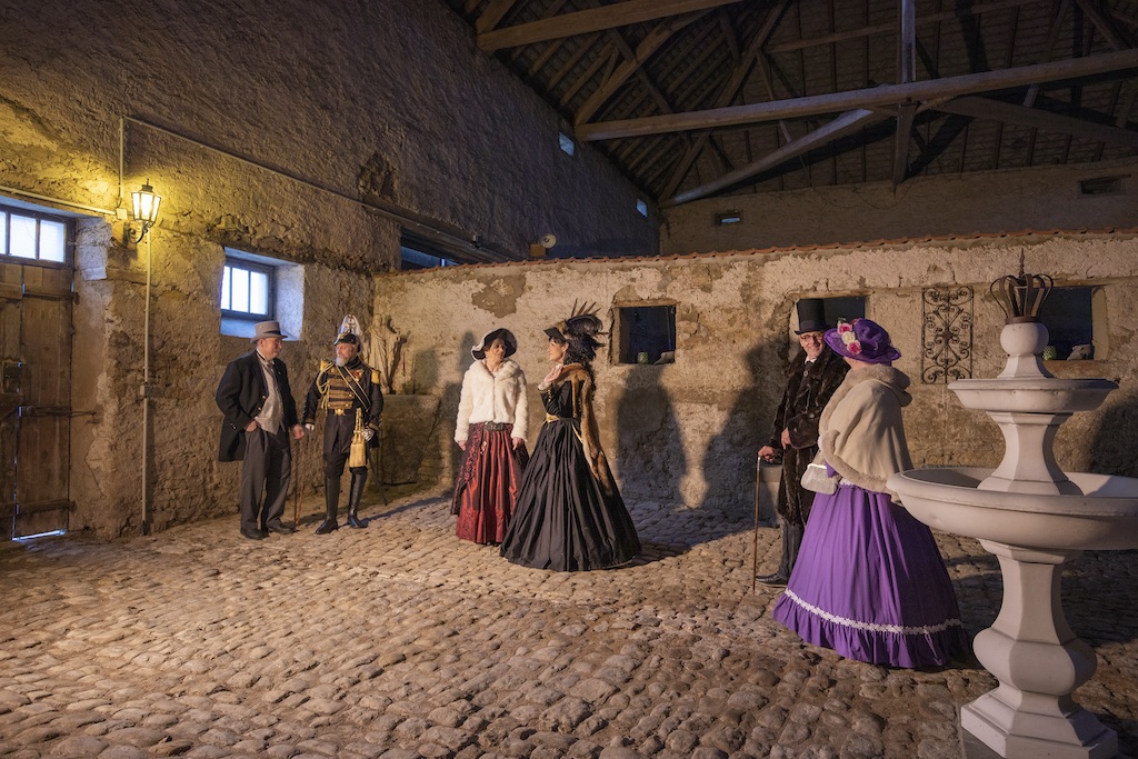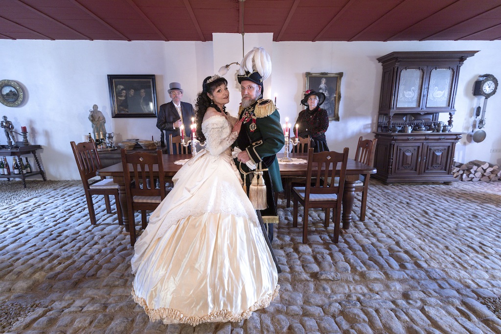Werbefotos für Schloss Mittenhoff - Chateau Saint Nicolas in Frankreich - Fotografin : Christiane Becker Modelle: Christine von Simonsdorf. Willi v. Simonsdorf, Leonie Neumann, Dagmar und Hans Herzer